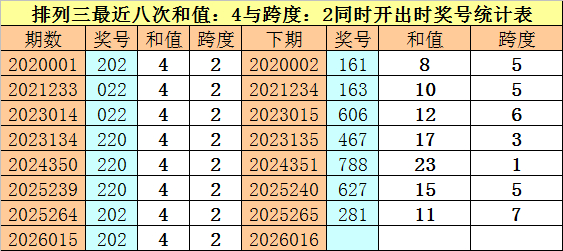 开奖总结:体彩摆列三第2026015期奖号为:202。和值为:4永康市富鑫电器有限公司,跨度为:2。